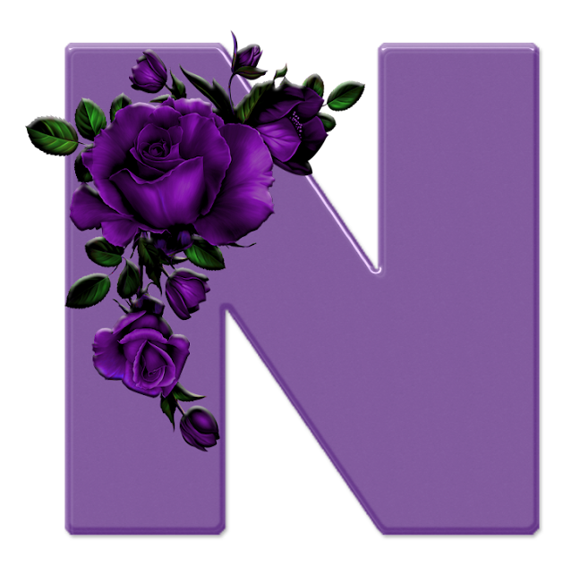 Alfabeto decorativo textura lilás com rosas roxas